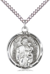 Sterling Silver Saint Joseph Pendant on a 24 inch Sterling Silver Heavy Curb chain