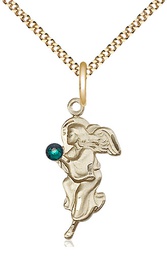14kt Gold Filled Guardian Angel Pendant with a 3mm Emerald Swarovski stone on a 18 inch Gold Plate Light Curb chain