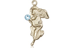 14kt Gold Guardian Angel Medal with a 3mm Aqua Swarovski stone