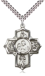 Sterling Silver 5-Way Firefighter Pendant on a 24 inch Light Rhodium Heavy Curb chain