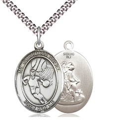 Sterling Silver Guardian Angel Basketball Pendant on a 24 inch Light Rhodium Heavy Curb chain