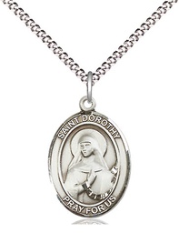 Sterling Silver Saint Dorothy Pendant on a 18 inch Light Rhodium Light Curb chain