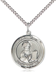 Sterling Silver Saint Paul the Apostle Pendant on a 18 inch Light Rhodium Light Curb chain