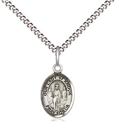 Sterling Silver Our Lady of Knock Pendant on a 18 inch Light Rhodium Light Curb chain