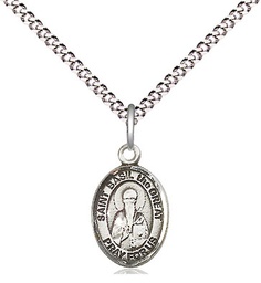 Sterling Silver Saint Basil the Great Pendant on a 18 inch Light Rhodium Light Curb chain